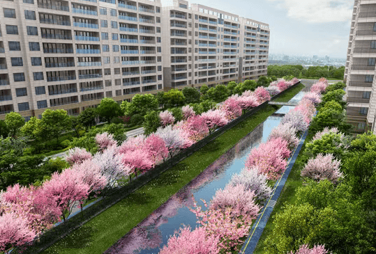 景观设计:项目毗邻元和塘景观带,同时引水入园,构筑城芯难得的双水岸生活。