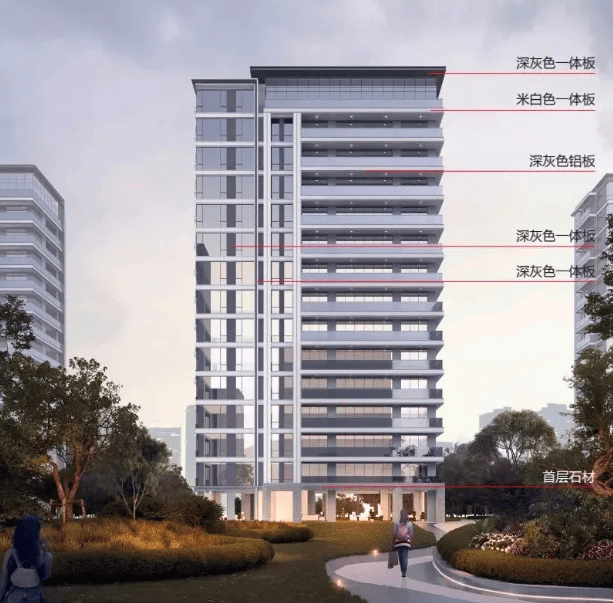 建筑设计:采用底部天然石材 + 天幕玻璃 + 铝板线条格栅 + 保温一体板的外立面设计,南立面窗墙比达到了约 46%,提升了建筑的品质和美观度5。