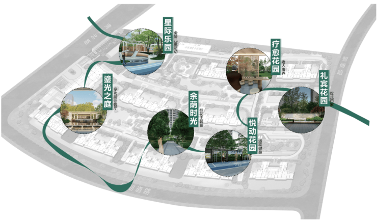 儿童滑滑梯、婴儿停车位、儿童跑道等,