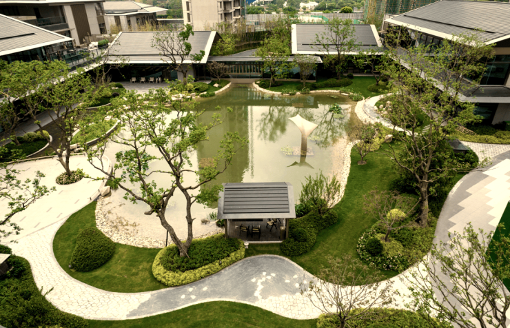 内部配套:约 8850㎡的业主会所,包含健康管理中心、文娱空间、运动场馆等二十余项功能空间;规划约 6300㎡中心大花园、约 1400㎡中央湖区,打造双十字景观中轴、五感疗愈、游园玖景。