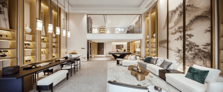 建筑风格:嘉兴首个纯现代东方宋式府坻风格小区,以《嘉禾八景图》为蓝本进行设计,展现宋风雅韵,如淡雅灰的立面主色调,搭配大面积透亮的玻璃与香槟金铝板,以及府制大门、厚重挑檐等元素,庄重而富有威仪。