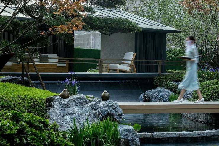 景观设计:园区内风雅亭、水系涌泉、置石造景、九步桥等景观相辅相成;大乔木、灌木、花卉等多重景观错落分布,步移景异;还打造了儿童活动空间、长者康养空间等全龄主题空间。