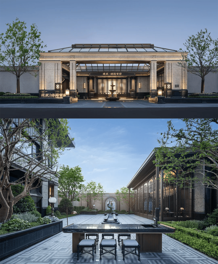 “两轴十园” 海派造园,融合马勒别墅、和平饭店元素;全龄架空层、艺术光影花园、疗愈花园、健身花园,三季有花、四季常绿