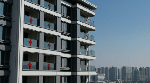 建筑外观:采用铝板 + 大面玻璃组合,米色搭配灰色的主色调,整体简约现代。