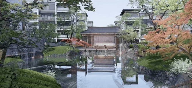 园林景观:以 “空、象、简、朴” 为理念,打造三进归家雅集,汲取苏州名园造园精髓,营造出具有中式韵味的居住环境。