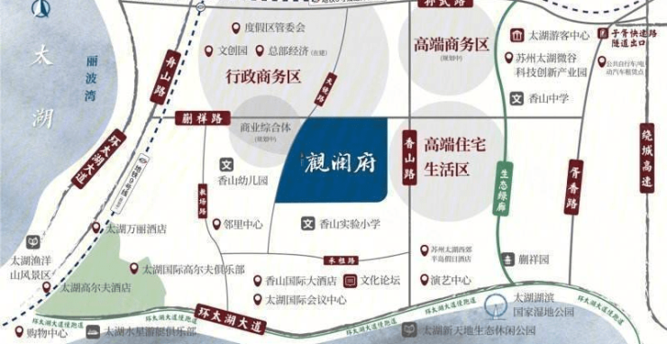 周边公园: 太湖湿地公园、新天地公园、东吴国家森林公园