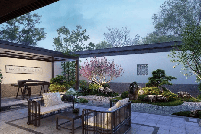 风格:融合苏派园林的曲径通幽与徽派建筑的精工细作,白墙黛瓦、飞檐翘角,保留原生水系与古树,22 米高差坡地造景,形成 “一院一景、移步换景” 的立体山水画卷。