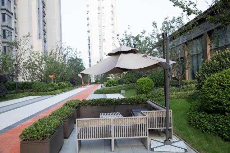 超高的颜值还体现在了极为用心的景观布局上,小区内部有一条完整的景观轴线,轴线两侧载重了不少名贵树木,还有中式风格的凉亭。