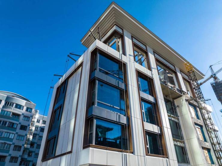 建筑风格:采用现代简约主义的建筑风格,外立面主要使用玻璃幕墙材料,线条流畅简洁。