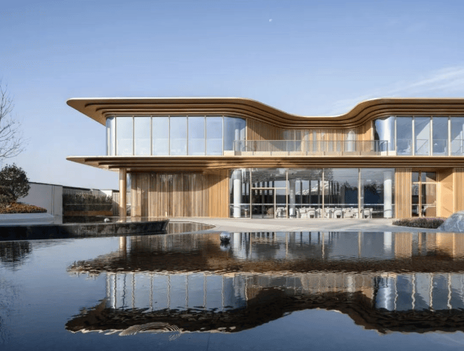 曲线云客厅:作为项目亮相的建筑,“曲线云客厅” 建筑线条流畅,有 “飞鹭展翅” 的立面造型,流线型挑空飞檐,搭配轻盈通透的全落地玻璃与定制铝板,内外空间融为一体,透露着品质感与未来感。