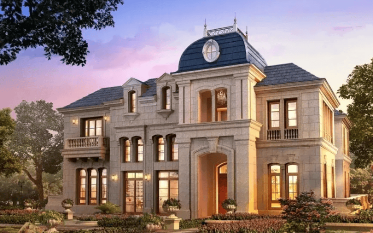 建筑与园林:新古典欧式风格,全石材立面,庄重典雅;约 1500 米河岸线 + 1.5 万㎡社区中心湖,30 米宽主入口,1 万㎡高端会所(含泳池、健身、宴请等);每户地上 3 层 + 地下 1 层(部分挑高可隔层),双车库 / 多车位配置;