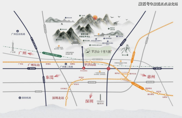 罗浮山·十里方圆,近邻着罗浮山站,与站点直线距离仅约500米。如此,无论是自驾或是搭乘交轨,都能迅速抵达广深。