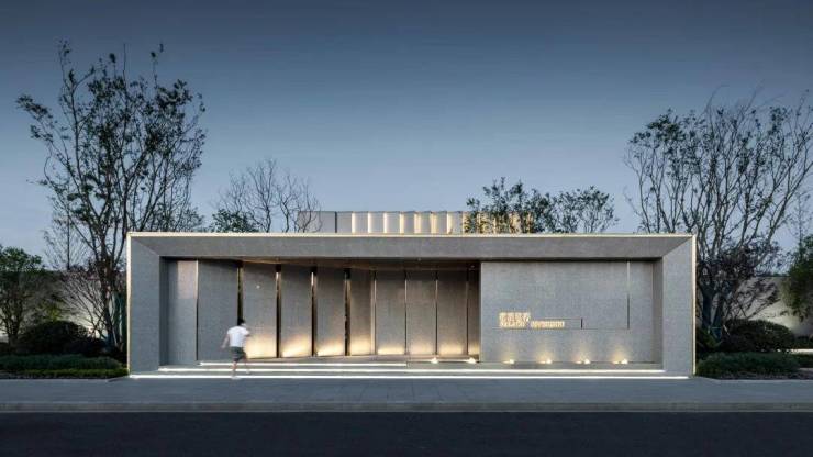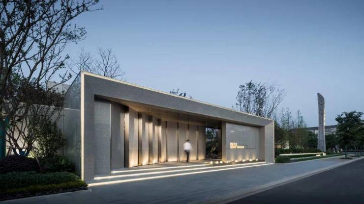 设计师最终选择以营造“最佳初印象”及“沉浸式体验感”为主,在市政界面,将门头和周围挡墙连成一片作为示范区完整入口,打造迎宾礼序界面,纯粹凝练。景观空间组织上,以迂回手法,拉长参观路线,将汀步与景观花境紧密结合,相映成趣,于建筑语言中提炼景观元素,在永恒与变化中,材料与视觉间,探求源著视界最景阔幽深的表达。