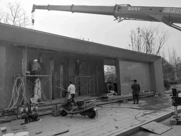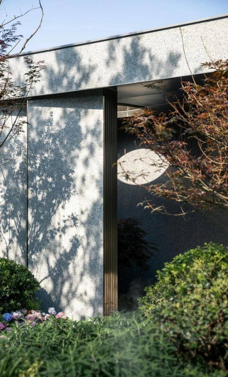 在有限的空间内,以与建筑同色的灰色围挡立面作为载体,任凭摇曳树影恣意投射之上,向阳乌桕,肆意怒放,光影静谧、庭院翠蔓,虚实互见,将空间清雅的气质进一步烘托。在看似冰冷、浮躁的都市里,树与场地,建筑,光影,相应成景,焕发出一沙一世界,一树一菩提的生命禅意。