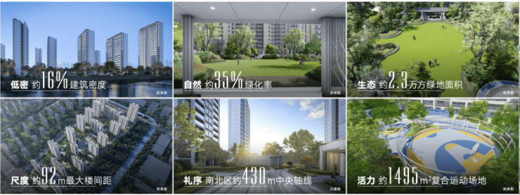 约21.7万方大社区建筑密度约16%,多重景观园林,最长约92米超宽楼间距。