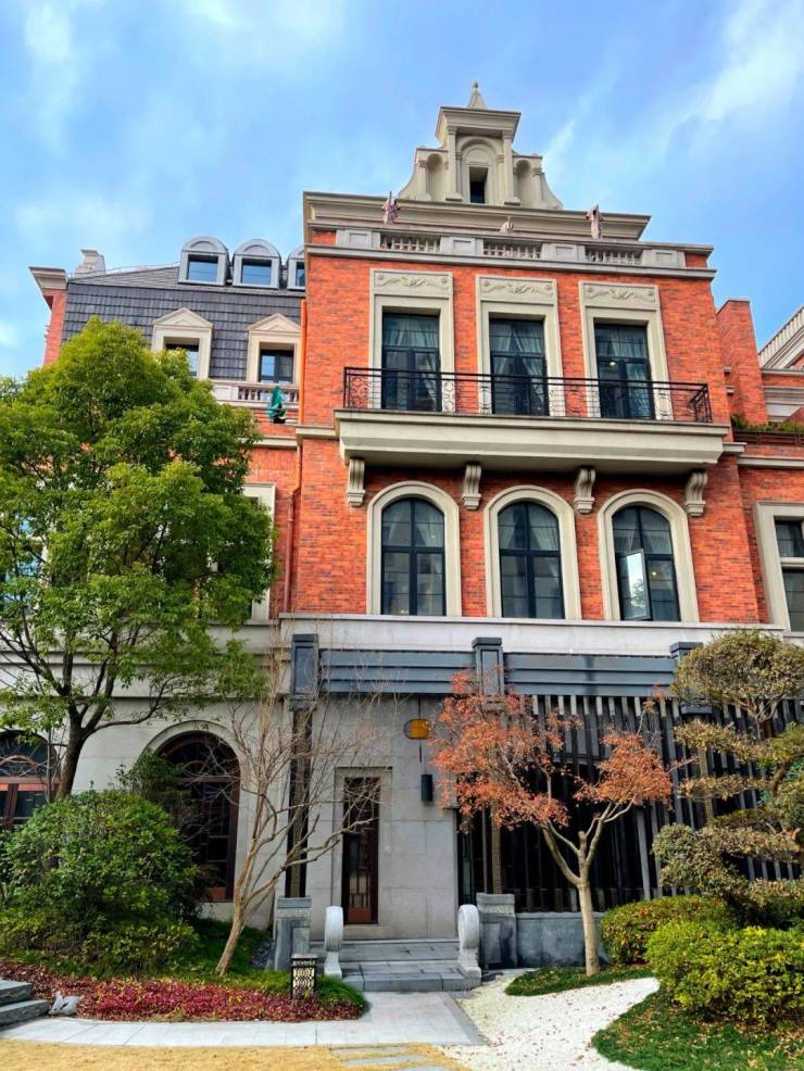 建筑风格:属于纯海派商墅,外立面采用石材干挂搭配铜制装饰线条,单栋占地约 1.5-2.5 亩,尽显老上海别墅的典雅质感。