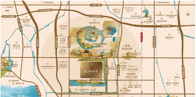 地块西侧的淹城路,北侧的延政大道均为城市主干道,连通常州各区。
