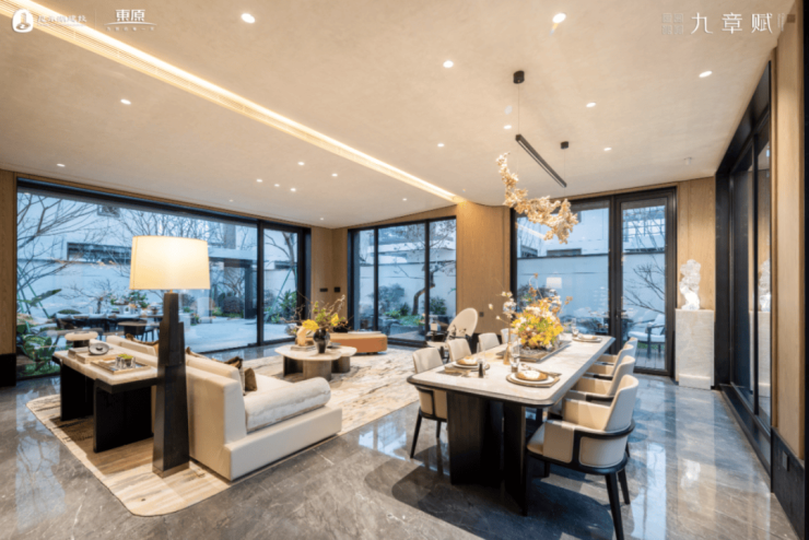 常熟九章赋雅院项目,包含约206㎡至328㎡的叠加(含地下面积)、约281㎡至481㎡的合院 (含地下面积)两大类产品,此次首开的是35套合院产品。