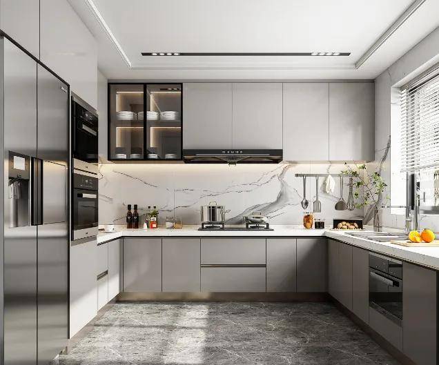 在U型厨房里,为家人准备美味早餐