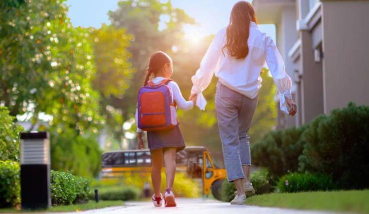 一起徒步送孩子上学