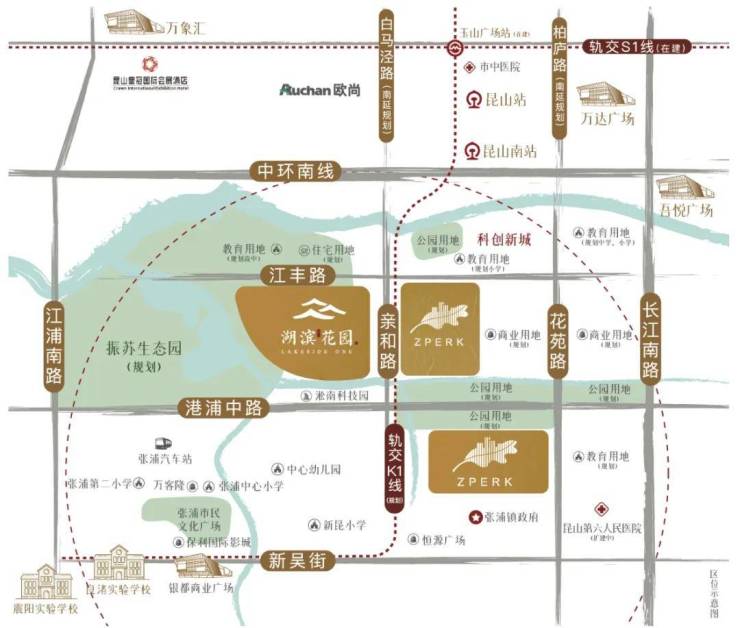 2、K1(规划)+S1(在建)快速联动长三角,邻张浦城市主干道亲和路,纵贯昆山南北;