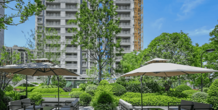 生态:后塘河滨水景观带、中央花园、约 260 米中庭夜光跑道