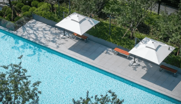 以「一轴八园」景观规划,打造中央绿地、环形健康步道、全龄活动区(儿童乐园、老年休闲空间);社区内水景连廊融合苏式园林意境;底层局部架空做泛会所,自带少量社区底商满足日常需求。
