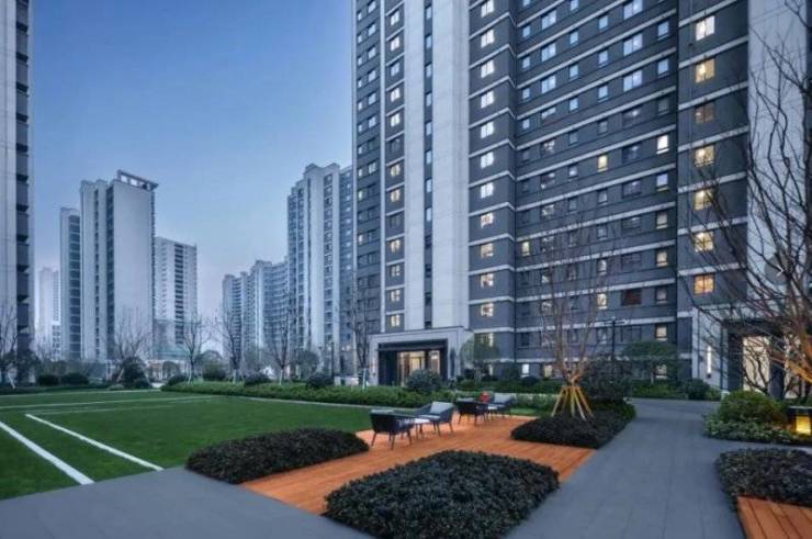 建筑为现代简约板楼,精装标准含中央空调、地暖、新风,龙湖标准化交付体系。