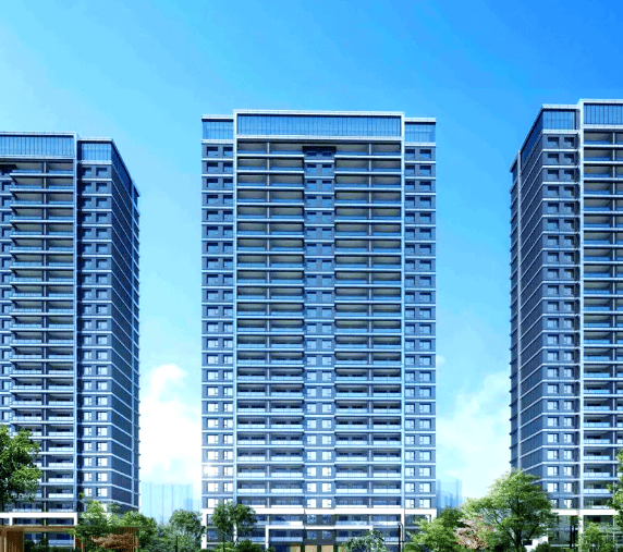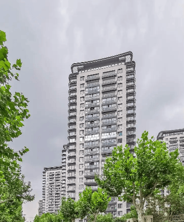 外立面采用现代简约风格,铝板搭配大面积玻璃,颜值与隔热隔音兼具;社区景观遵循 “一带两轴多节点”,设有中央草坪、儿童活动区、长者休闲区、健身步道;楼间距约 48.5–73.8 米,保证多数楼栋的日照;24 小时智能安防、人脸识别门禁,科技系统可远程调控室内温湿度。