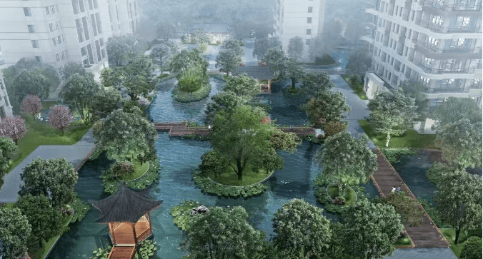 水系设计:独创 “一岛一栋” 设计,打造人工湖、宅间水系等,让业主享受三面水系环绕。活水巧妙串联生活动线与景观片段。西地块占地约 2.65 万方,水景面积达 4416 平,是无锡主城规模最大的全社区水景园林。园中除太湖石造景外,还选用寓意喜庆、富贵吉祥的黄蜡石点缀驳岸。