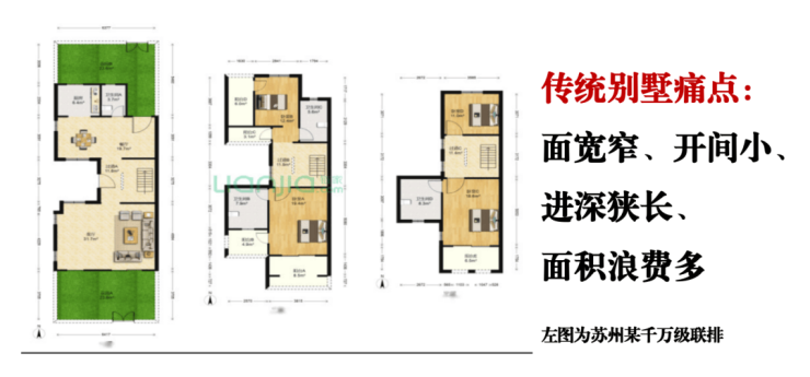 以往的别墅,除了独栋,其他房型难免都有会有开间过短,进深狭长的局面,导致许多别墅项目很鸡肋。
