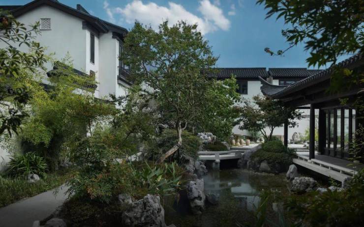 整体设计以传统江南民居为蓝本,深度融合现代居住需求,还原传统宋代建筑韵味。白墙黛瓦鳞次栉比的铺排,亭、台、轩、榭、曲桥、流水,或因势而起,或舒缓为溪,五步一景,十步一重天,皆为山川精华和能工巧匠所致。