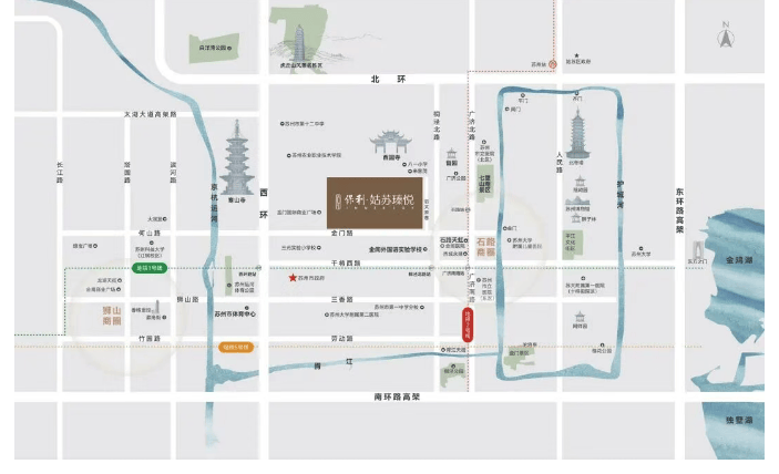 地段核心项目位于姑苏区金门路与后文家巷交汇处,处于苏州古城核心地带,是“一核四城”战略中的核心位置。周边环绕苏州市政府、留园、西园寺、寒山寺等文脉地标,兼具历史人文底蕴与现代城市繁华,交通、商业、教育等资源高度集中。