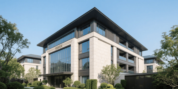 建筑风格:采用现代简约风格,外立面以浅灰色石材搭配金属线条,65% 窗墙比搭配双层中空 Low-E 玻璃,采光与隔音效果俱佳。