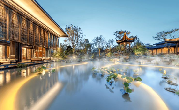 园林景观:打造 “一轴两环九巷十八景” 景观体系,融入曲水流觞、月洞门、风雨连廊等苏式园林符号,师法苏州网师园,一轴七坊风雅园境,泼墨江南,山石、花木、流水相映成趣。