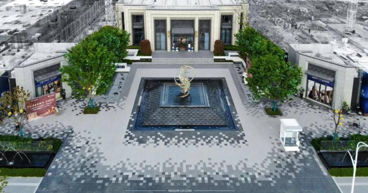 设计师以极致现代的方式去雕琢与精粹,采用相同数量的相似几何形状界面的排列组合,并科学合理的分割与捏合每个空间,产生层层叠叠的视觉效果,整体设计极具时代感与前瞻性,成功打造出钻石般璀璨闪耀的景观空间。