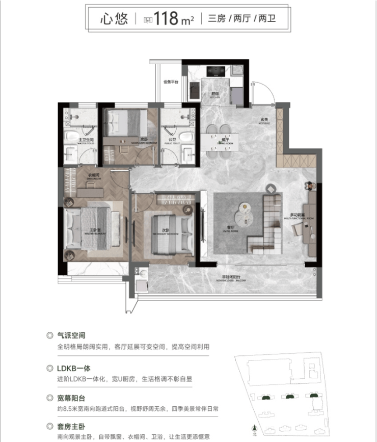 【户型面积】约105㎡、118㎡、134㎡、135㎡、144㎡、169㎡、188㎡