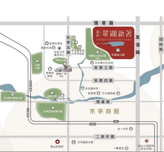 交通配套:小区周边 3 公里内有 1 条轨交线(轨道交通 10 号线),最近的地铁站为蒋乘路站,距离小区约 732 米。同时,小区周边 1 公里内有多个公交站,一条人民路串联众多金融机构和政务机构,链接西二环、东二环,接驳苏虞张快速路,交通便捷。