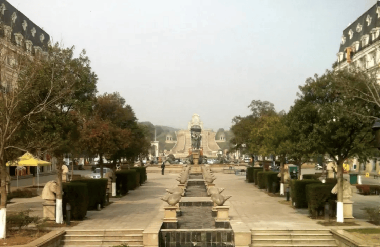 建筑风格:浓郁法国古典风,香榭里大街式沿街楼栋,三段式公建化立面,广场叠水、雕塑点缀,氛围独特。