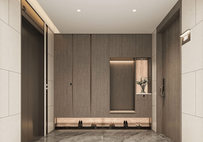 梯门一开,家的温暖迎面而来,家的玄关尺度,延伸至电梯厅。