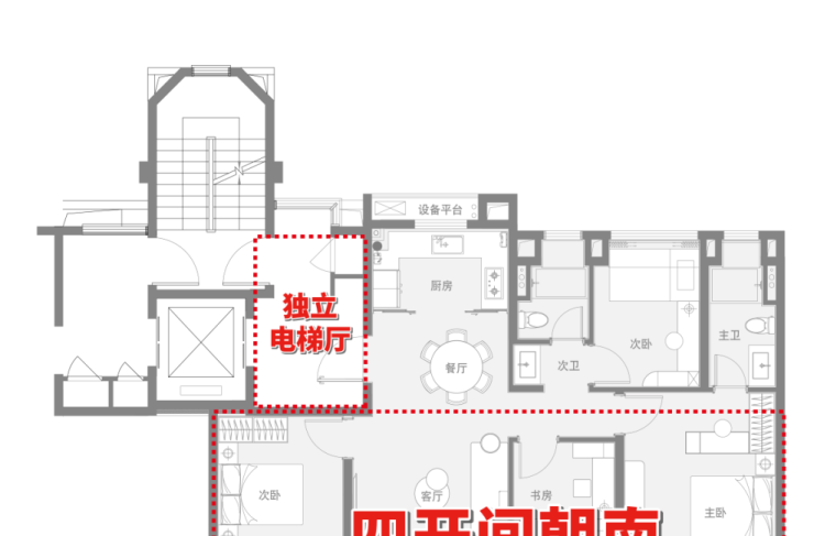 建面约115㎡4房做到同面积段罕见的四开间朝南+4房设计,同时能以更经济的总价一步到位4房。