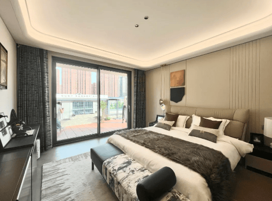 户型设计注重空间感与舒适度,层高约3.15-3.3米,横厅宽度达5.8-6.5米,主卧采用套房式设计,搭配大面积景观阳台,采光、通风与视野俱佳。叠墅产品平墅开间约19.2-22.8米,地下空间合理利用,满足多元生活需求。