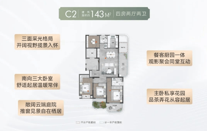 3#楼占位北向一线位置,临近小区出入口,归家之旅从容便捷。二开加推建面约143㎡边套/中间套两大户型。边套户型三面采光,三大卧室南向排布,奢享三大空中花园,光影与清风时刻造访。中间户型方正四房格局,钜制南向巨幕横厅,高配云端庭院,宽奢阔境难得一见。