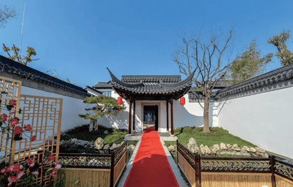 这里有墅有院,有约2万平中央湖景,四面环水,营缮粉墙竹篱、飞檐戗角、雕梁画栋、墙面漏窗等形制,每个房间皆可观景。
