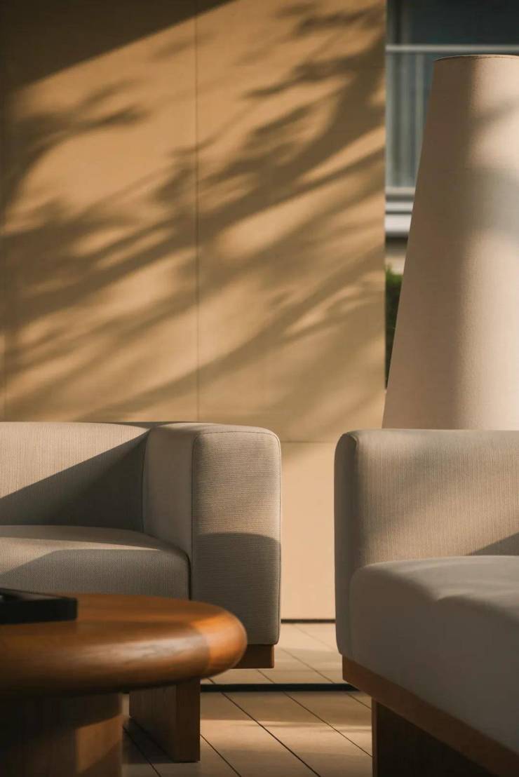 在本案的设计中,阳光能够充分渗透并覆盖后场的开放空间,使空间不仅具备静谧的内涵,更具备充沛的生命力。阳光在不同时间、不同季节的变化,赋予了空间动态的美学表现,从早晨的温暖晨曦到傍晚的柔和余晖,光影的流转不断丰富景观的层次感与深度感,带来一种时刻变化的、富有活力的空间体验。