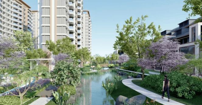 密滨水社区:项目紧邻 10 万平方米的贝港滨水生态公园,通过 “引水入园” 的设计手法,将贝港天然水系引入社区,环绕叠墅区而过,打造出 “内外双公园、五大园林体系” 的滨水岛居墅区,居民可推窗即享水景,体验零距离亲水生活