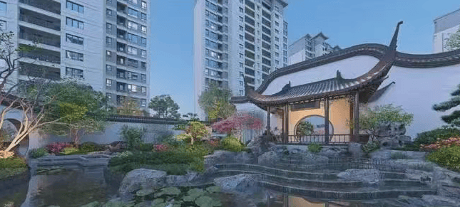 景观设计:特邀山水比德景观设计公司,以围合式布局,打造一轴一核、一环四园的景观格局,营造出颇具诗意的园林景观。