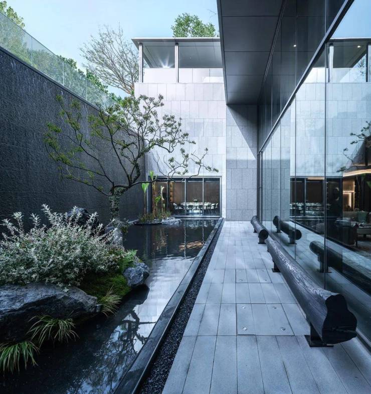 How poetic is it? In the hustle and bustle of the city, it is to place a landscape and sound valley, apply Wuxi's humanistic artistic conception and homestead regulations to the garden landscape, seek poetic habitation between the mountains and waters of tea and the moon, and create an ancient and modern Oriental landscape courtyard.