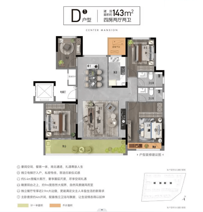 主、次双卫设计,即使有长辈、朋友来家里暂住,也能避免等待洗漱、淋浴等不必要的尴尬。