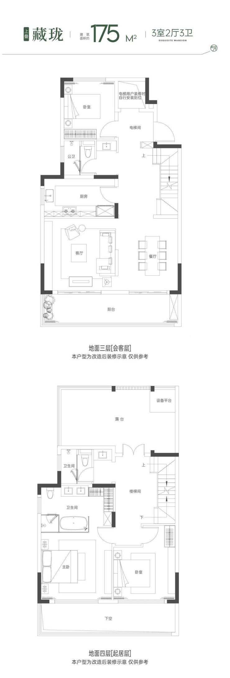 叠墅:建筑面积约175㎡ |3室2厅3卫